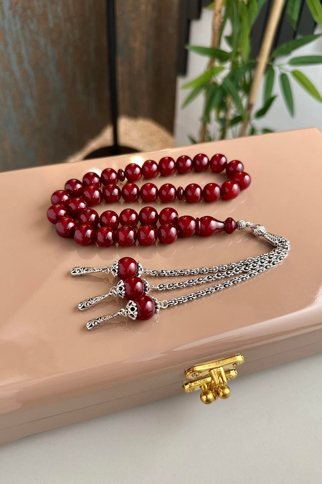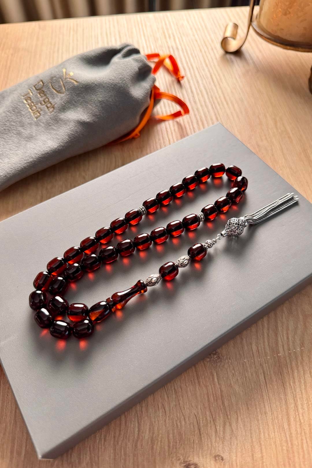 Kırmızı Kehribar Tesbih, enerjisi yüksek, dikkat çekici ve tutkulu bir seçimdir. Kırmızı, kehribar taşının en etkileyici renklerinden biridir çünkü güçlü bir canlılık ve hareket hissi uyandırır. Bu renk, hem modern tasarımlarda hem de koleksiyonluk parçalarda sıklıkla tercih edilir.