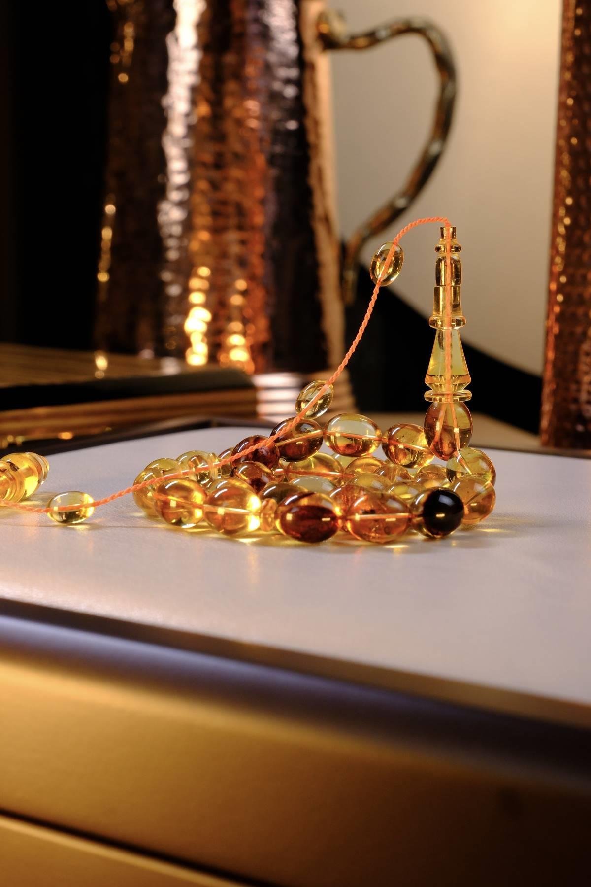 - Tesbihi sık sık aşırı hızla çevirmekten kaçının; sürtünme ısısı kehribarın rengini zamanla değiştirebilir.