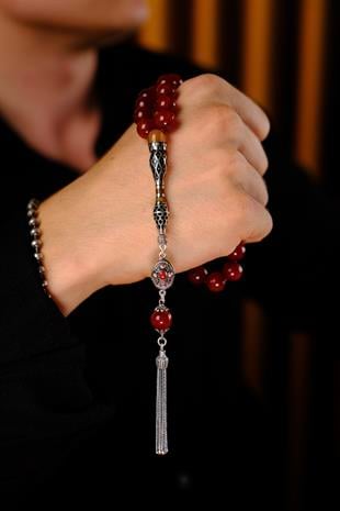 : Gümüş Fakir Usta El İşçiliği Nakkaş İmame Tasarım Orjinal Sıkma Kehribar Tesbih