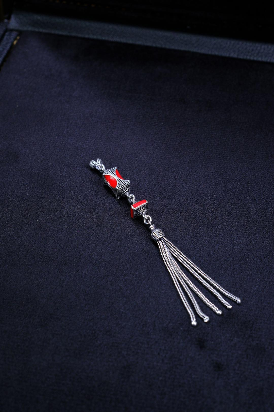 Özel Kırmızı Mineli Gümüş Püskül