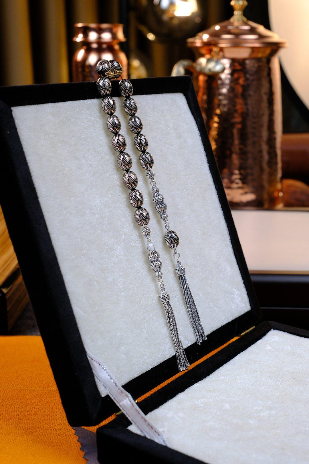 Sanatın ve zanaatkarlığın buluştuğu noktada, M.Serkan Coşkun imzasını taşıyan bu eşsiz tespih, kuka ağacının benzersiz dokusunu ve gümüşün zarafetini bir araya getiriyor. Her bir tanesi özenle işlenen kuka taneleri, ustalıkla işlenmiş gümüş detaylarla süslenmiştir. Bu tespih, sadece bir aksesuar değil, aynı zamanda bir sanat eseridir. Hem ruhunuza hem de tarzınıza hitap eden bu özel parça, M.Serkan Coşkun’un yılların deneyimi ve titiz el işçiliğinin bir sonucudur.
