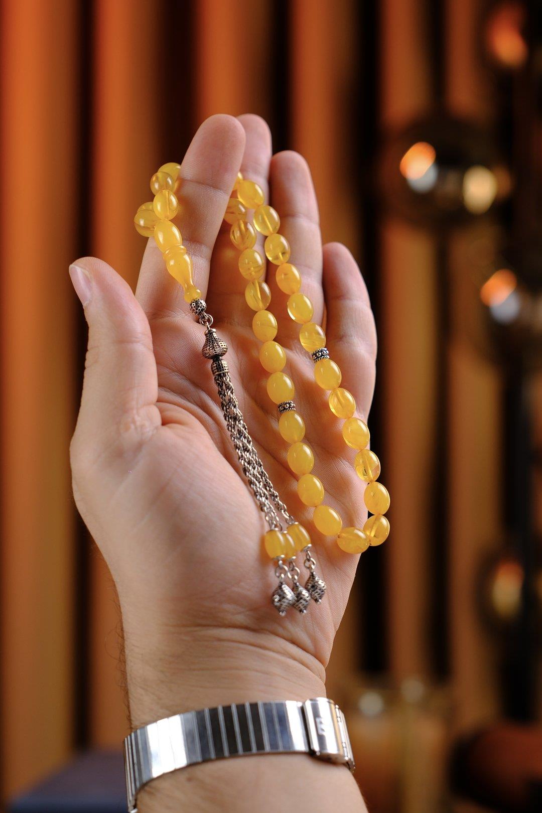 Zarif Tasarım Gümüş Püskül Ateş-i Sıkma Kehribar Tesbih (DRG2695)